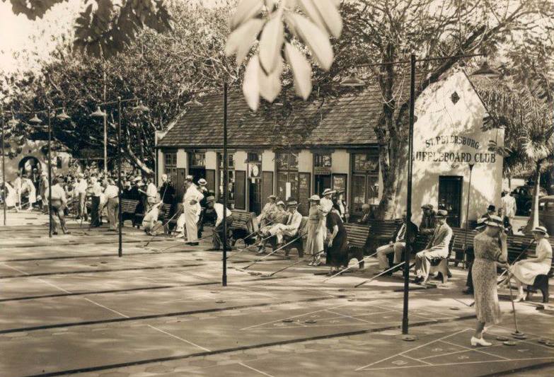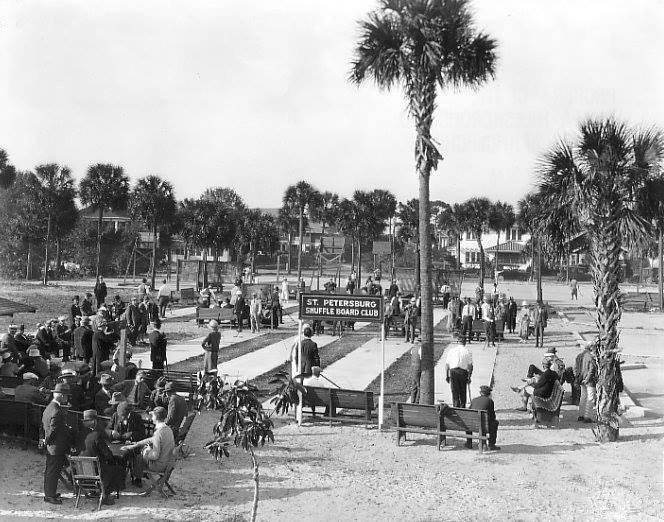 Em 24 de janeiro de 1924, na cidade de São Petersburgo, Flórida, com apenas duas quadras construídas em uma praça, fundou-se o St. Petersburg Shuffleboard Club, o maior e mais antigo clube de Shuffleboard do mundo.