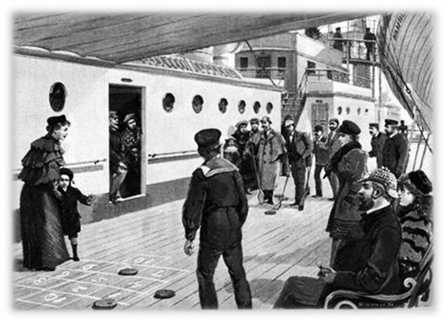 O shuffleboard tornou-se tão tradicional nos navios transatlânticos que até os dias atuais é encontrado nos principais cruzeiros turísticos pelo mundo!
