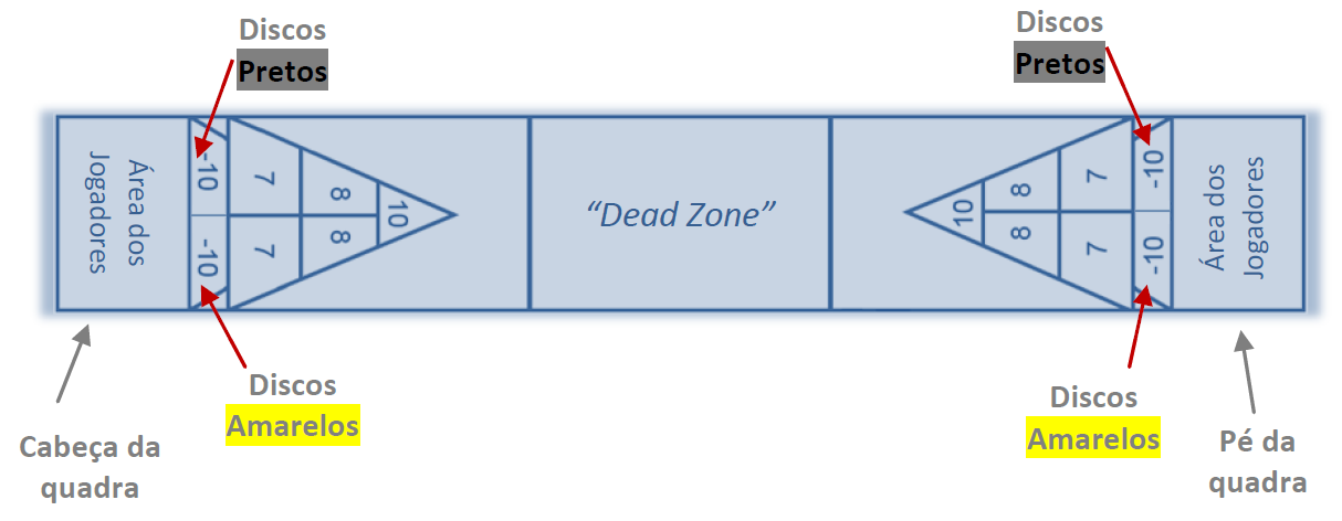 - Se um disco lançado parar na zona central da pista (Dead Zone) deve ser removido.