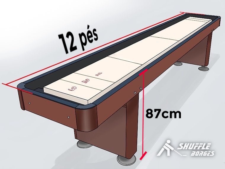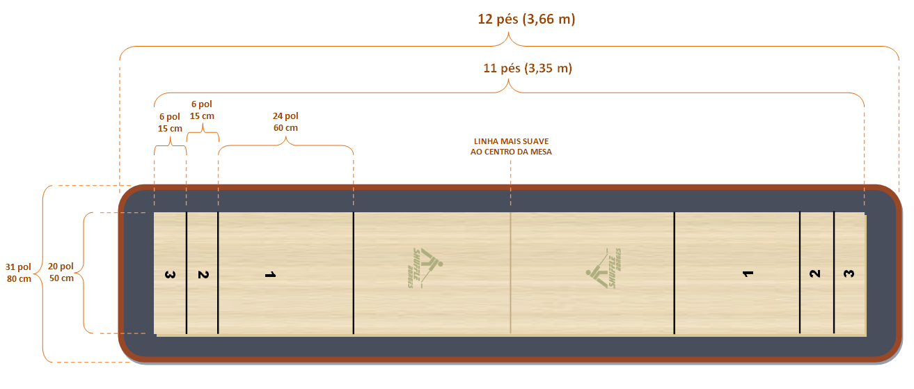 Medidas oficiais da Mesa de Shuffleboard de 12 pés (Clique para ampliar)